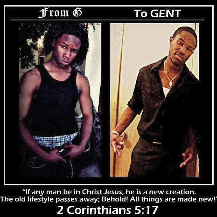 #TBT My transformation when I first got saved… I was trying my best to be hard in order to fit in and be like the other guys at school and in my neighborhood. Saggin my pants, exposing my boxers, walking around outside with a wifebeater, mean muggin everybody, taking pictures with my middle finger. Lol. But then I finally embraced the meek and humble spirit that God had put in me. I don’t have to act hard like everybody else. It’s OK to be different. It’s OK to be a gentleman. It’s OK to be me. ☺ #FromGToGent